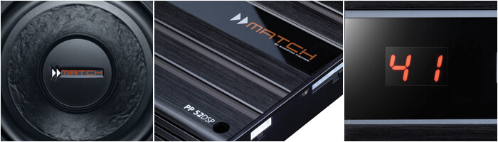 Mit den Match Caraudio Produkten kann eine bestehende Caraudio Anlage leicht aufgewertet werden. Die serienmäßigen Auto Lautsprecher können dabei weiter genutzt werden. Eine Match Verstärker Endstufe mit eingebautem DPS (digitalter Soundprozessor) berechnet dann die Idealwerte für maximale Soundverbessung in Ihrem Auto. Zwischen Werstklang und optimiertem Match Sound liegen Welten!