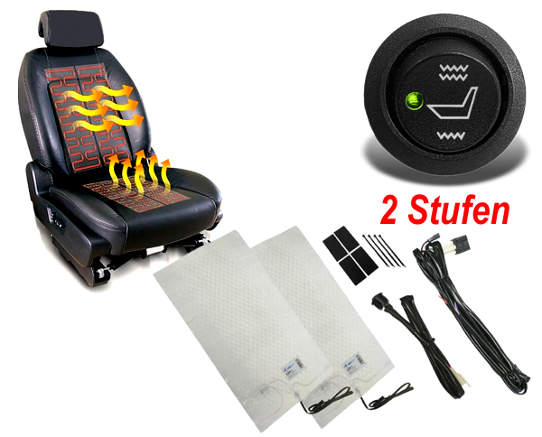 Wie CSH1-2 Set, jedoch für 1 Autositz. 2-Zonen Carbon Auto Sitzheizung zum Nachrüsten in nahezu jedem Auto. 2-Zonen bedeutet, dass sowohl ein Heizelement in der Sitzfläche, als auch in der Rückenlehne eingebaut wird. Somit entspannen Sie Ihren Rücken und genießen maximalen Komfort. Die Sitzheizung verfügt über einen Schalter mit Stellung AUS, Stufe1 und Stufe 2. Der Vorteil einer Sitzheizung aus Carbon gegenüber einer gewöhnlichen Sitzheizung bestehr darin, dass die Heizelemente einfach passgenau zugeschnitten werden können. Ein integriertes Thermostat verhindert ein Überhitzen der Heizflächen.
